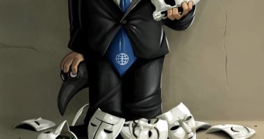 كاريكاتير يحذر من الأقنعة والوجوه المختلفة للشخص الواحد على شبكات الإنترنت