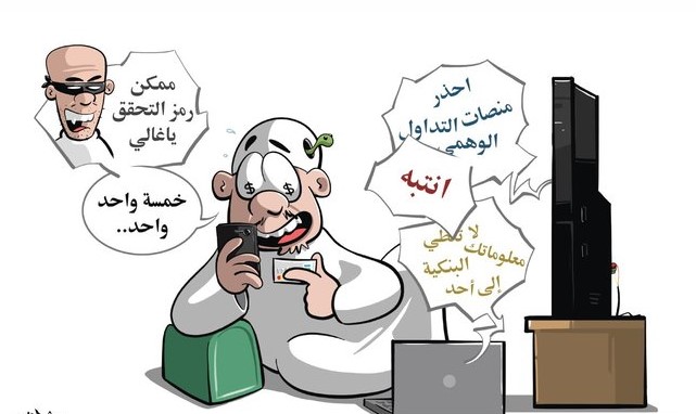كاريكاتير اليوم يحذر من منصات التداول الوهمية للربح