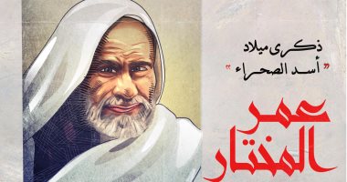 كاريكاتير يحتفى بذكرى ميلاد عمر المختار "أسد الصحراء"