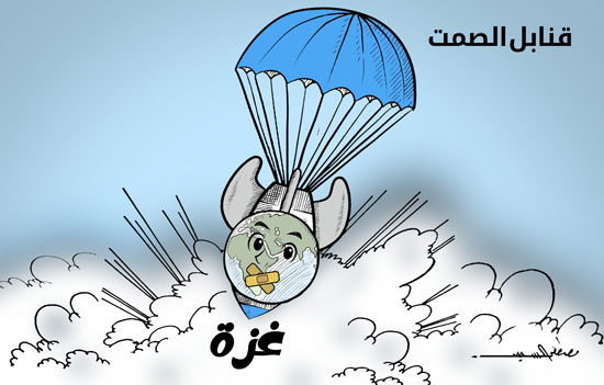 قنابل الصمت تقتل الفلسطينيين وتكمم أفواه العالم فى كاريكاتير