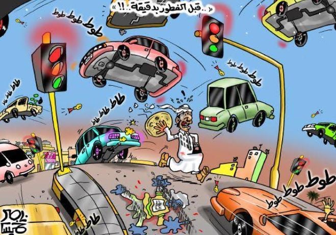 زحام الشوارع قبل الإفطار بدقيقة فى كاريكاتير خليجى