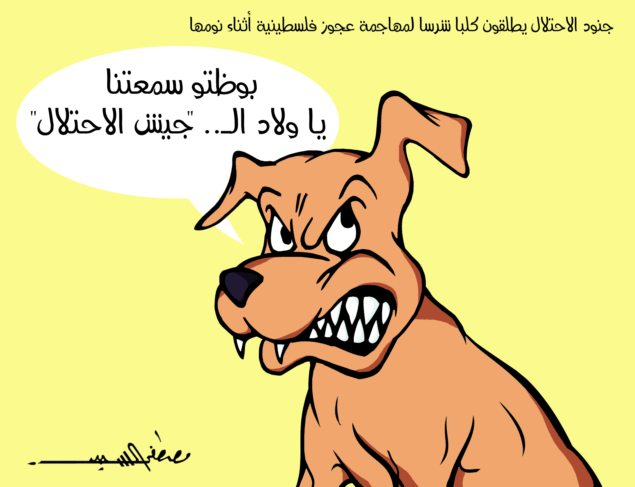 هجوم كلب جيش الاحتلال على المسنة الفلسطينية.. فى كاريكاتير