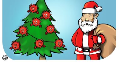 كورونا تغزو شجرة الكريسماس وبابا نويل ينظر إليها بحزن