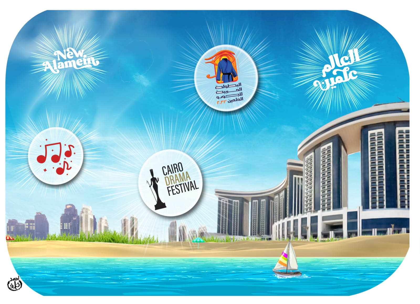 مهرجان العالم علمين يضىء بالغناء والطرب والثقافة في كاريكاتير